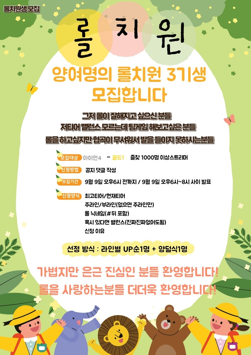 양여명의 롤치원 3기생 모집합니다!