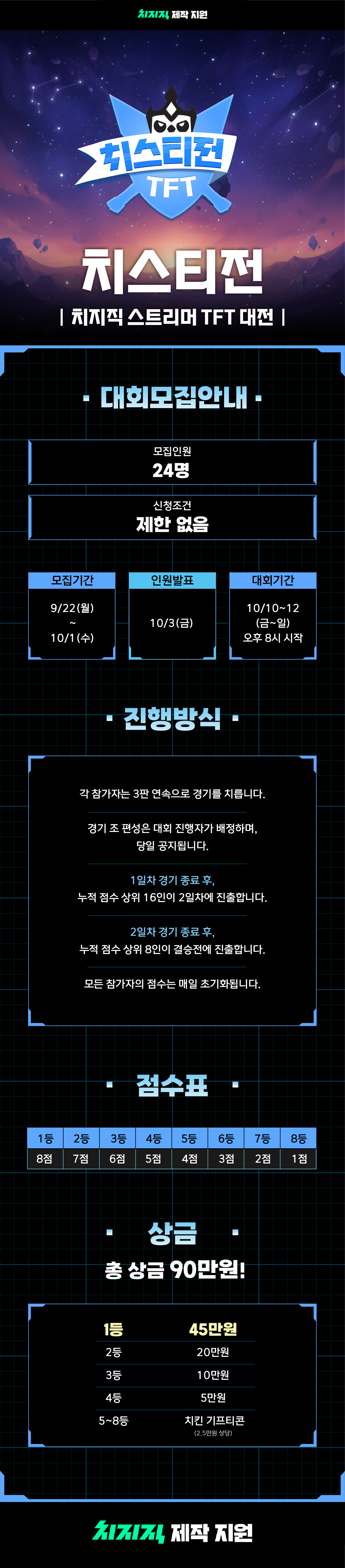 (총 상금 90만원) 치지직 스트리머 TFT 대전자 모집중! (~2025/10/1)멍멍생이신청하러 가기https://game.naver.com/lounge/chzzk/board/detail/6699271
