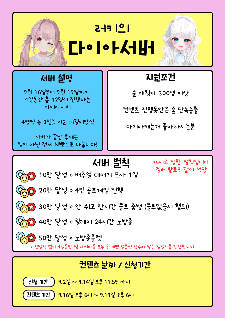 다이아서버도 하고싶고 여러 스트리머분들과도 인연을 만들고 싶어서 컨텐츠를 준비했습니다