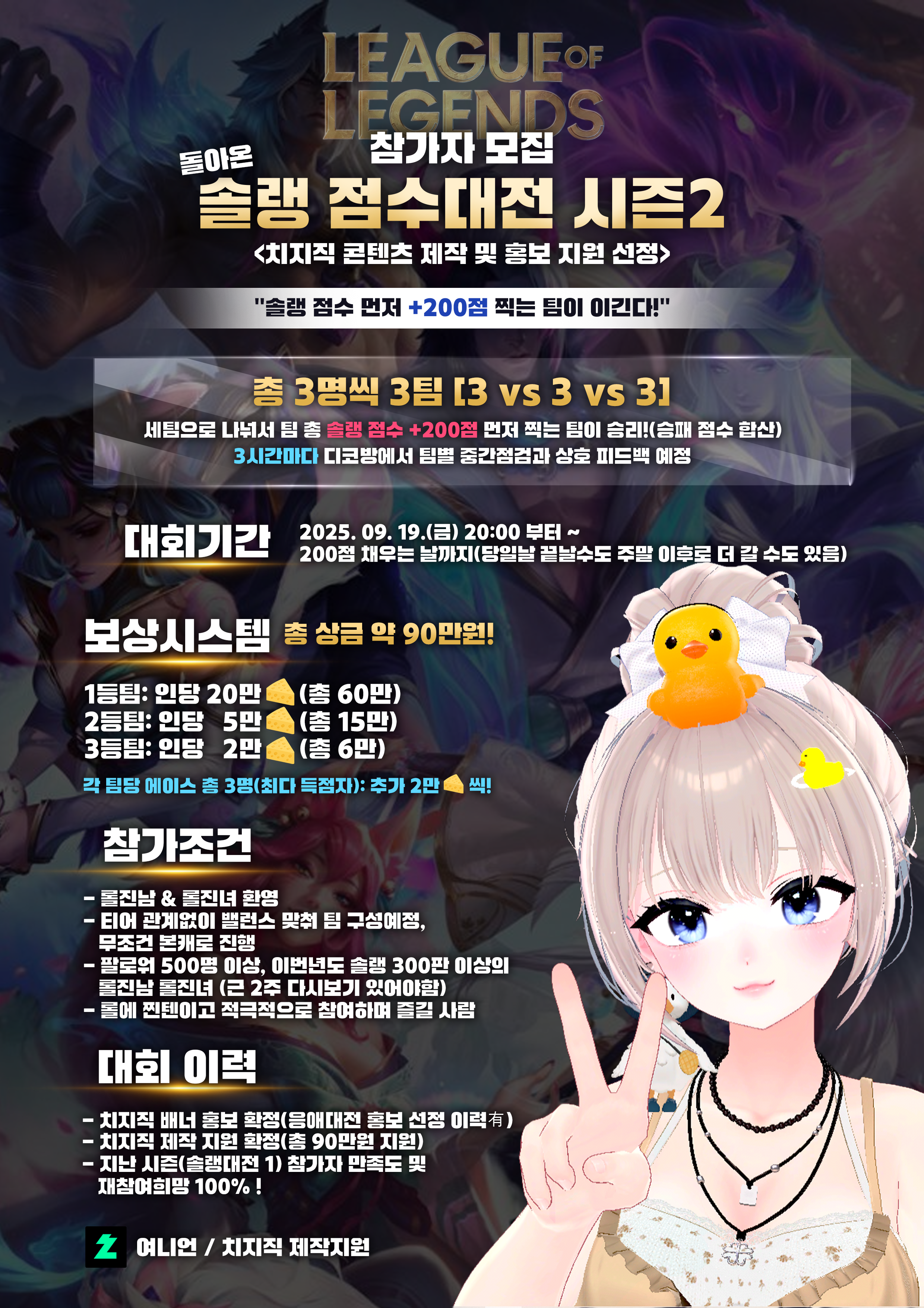 🎮 이번엔 3팀이다! 돌아온 [치지직 3vs3v3 솔랭 점수대전 시즌2 참가자 모집]🎮