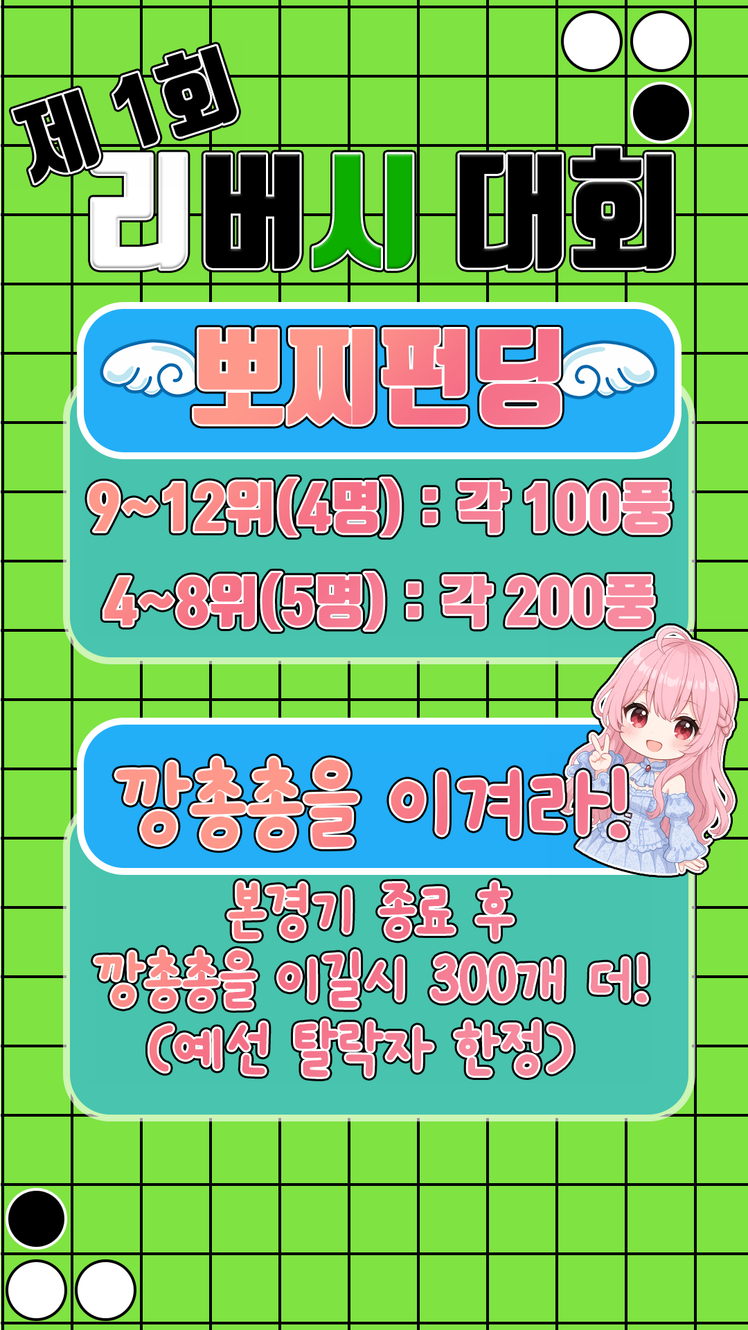 방제 "제1회 깡총총의 리버시 대회" 적어주셔야합니다.