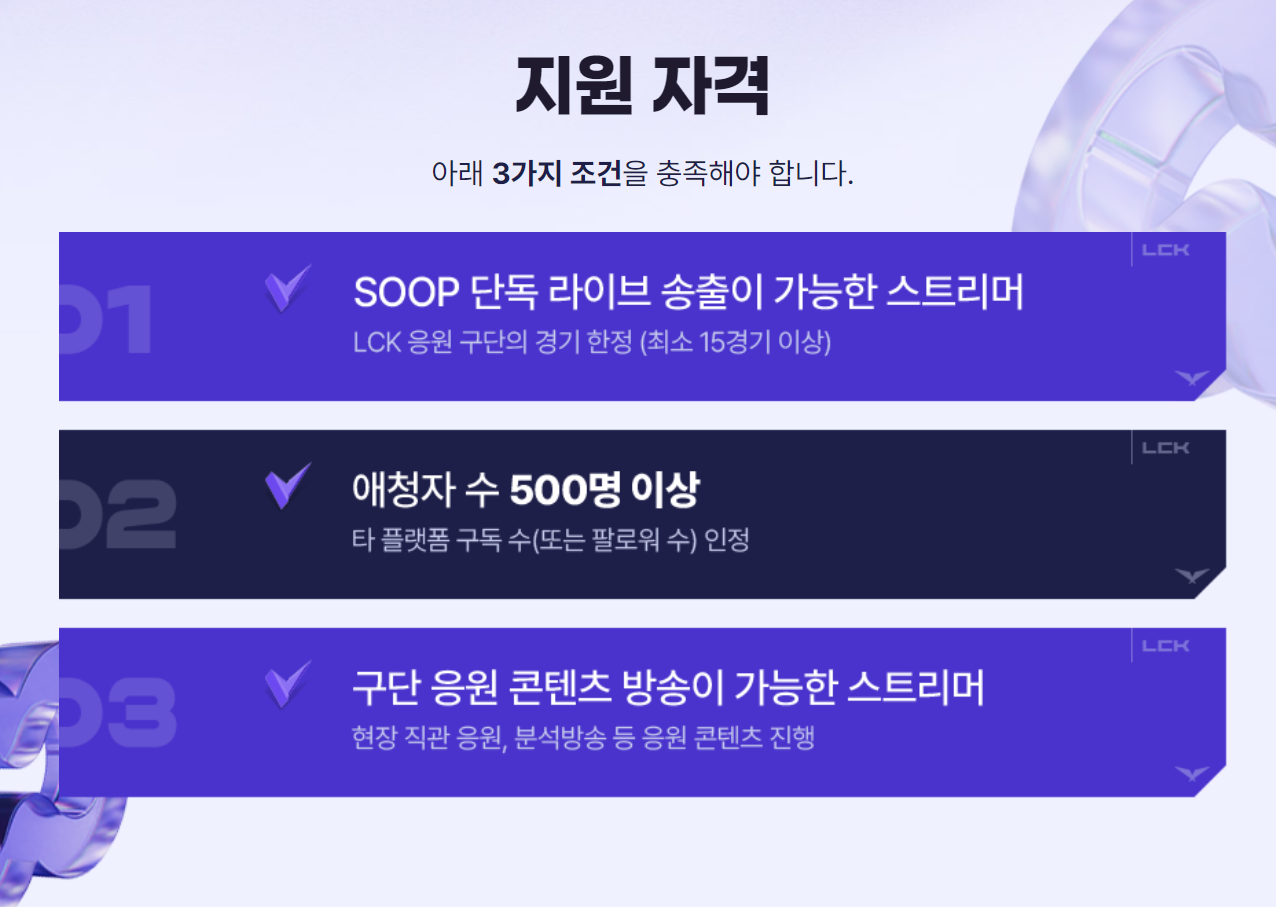 SOOP공식 LCK 구단별 서포터즈 스트리머 모집