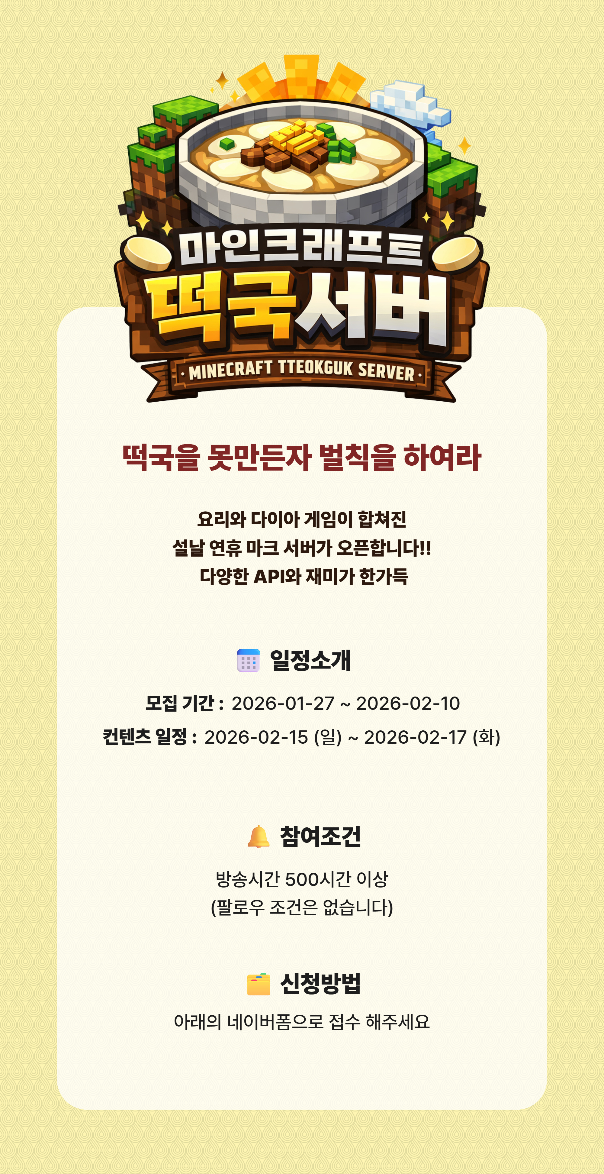 ⭐설날 특집 [떡국서버] 참여 스트리머를 모집합니다⭐