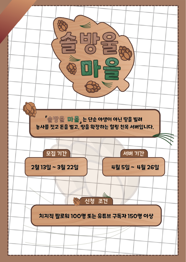 🌽스트리머 서버 「솔방울 마을」 에서 농부를 찾습니다.